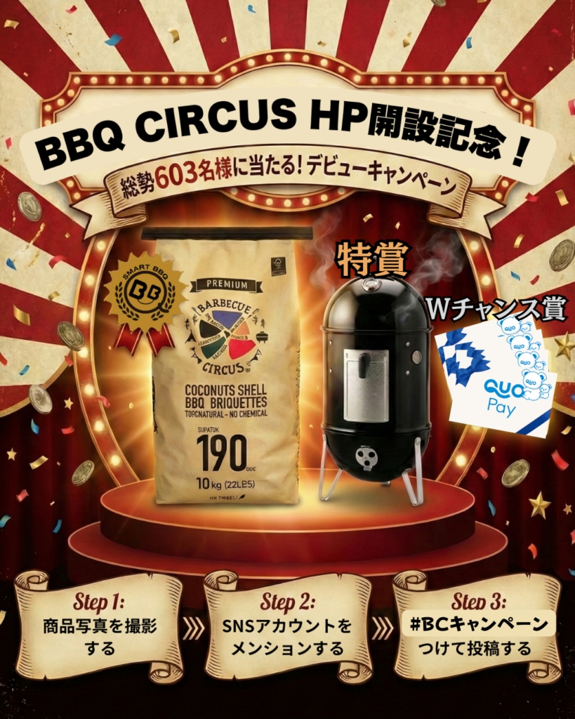 2026.02.04BBQ炭の新定番「バーベキューサーカス」HP開設記念キャンペーンのご紹介!